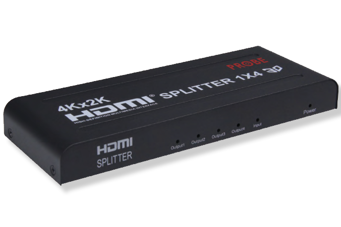 This hdmi 4K 1x4 splitter use a single HDMI source,accessing to multiple HDMI sinks .It allows one HDMI device to be split easily to four HDMI compatible monitors or projectors.In addition,It can also be placed at the end of a long HDMI cable to regenerate the HDMI signal. The resolution of this hdmi splitter can be up to 3840X2160/30HZ.