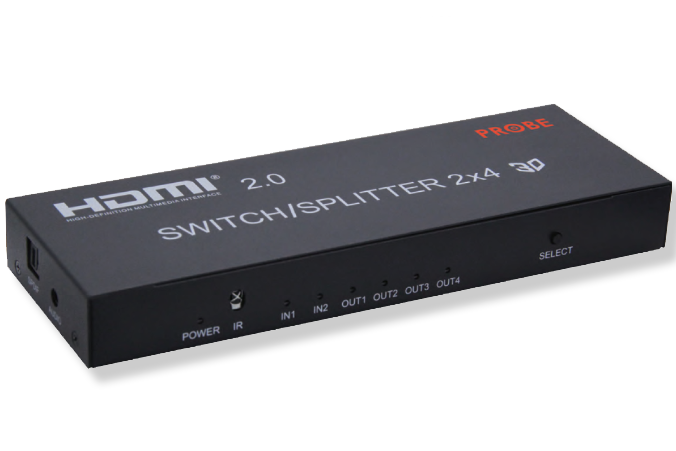 The 2 x 4 HDMI 2.0 switch splitter can connect 2 hd signal sources to 4 hd display terminals.It can easily split the 2 hd